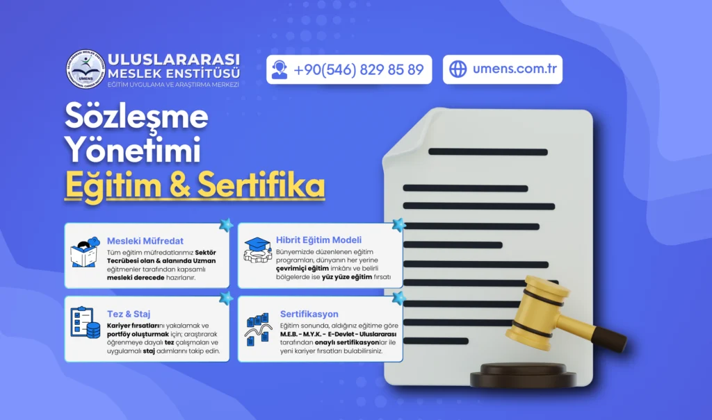 Sözleşme yönetiminde profesyonel bilgi birikiminizi artırın. Sözleşme Yönetimi Eğitimi ile sözleşme hazırlama, müzakere ve yönetme konularında yetk...