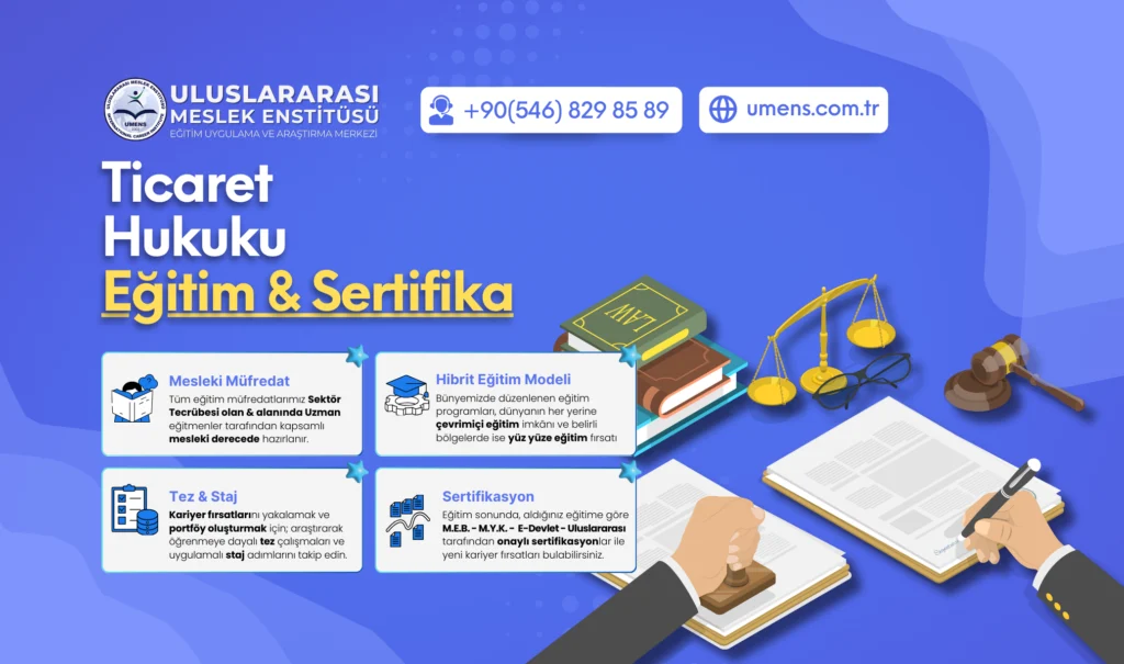 Ticaret dünyasında hukuki bilgilerinizi güçlendirin. Ticaret Hukuku Eğitimi ile ticari sözleşmeler, şirket yönetimi ve ticari uyuşmazlıkların çözüm...