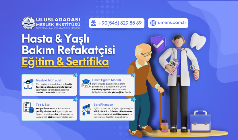 UMENS Hasta ve Yaşlı Bakım Refakatçiliği Eğitimi, yaşlı ve hasta bireylerin günlük bakım ihtiyaçlarını karşılayacak profesyoneller yetiştirir. 100 ...
